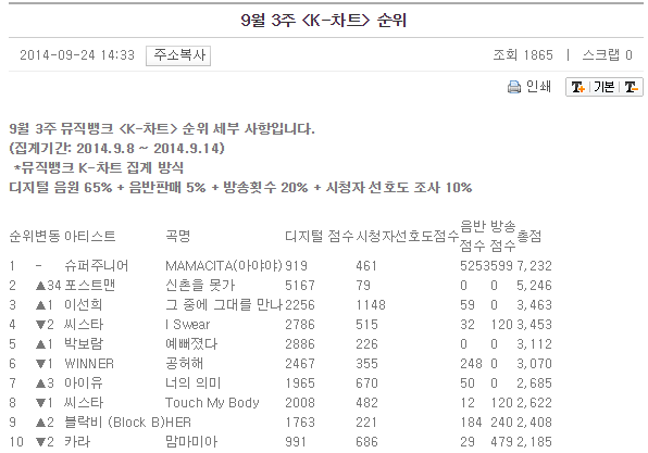 9월 3주 <K-차트> 순위存兩篇兩年前談銷量談榜單的文章